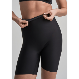 - Bermuda modelante de cintura alta, que esculpe eficazmente tus muslos, abdomen y cintura, brindándote una silueta estilizada que realza tus curvas naturales.