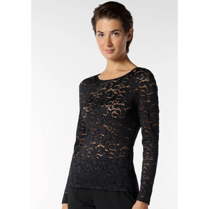 - Polera manga larga de encaje refinado con escote bote.