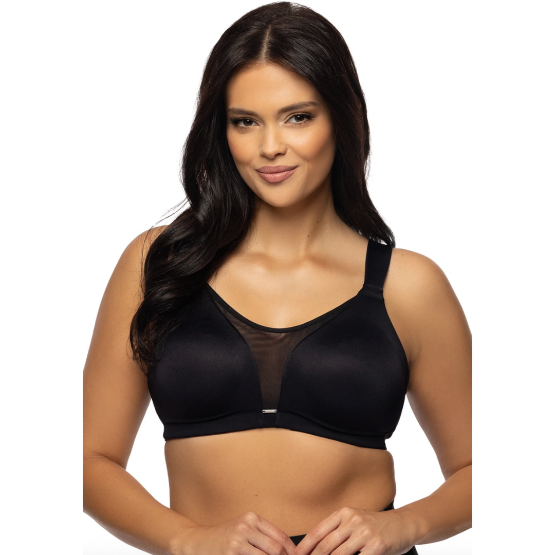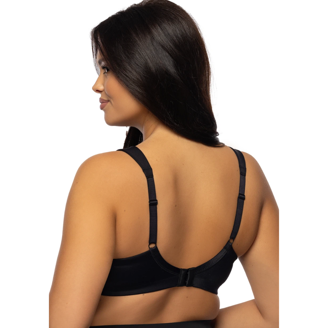 - Con sus laterales altos y una banda bajo el pecho de 25 mm de ancho, este sostén